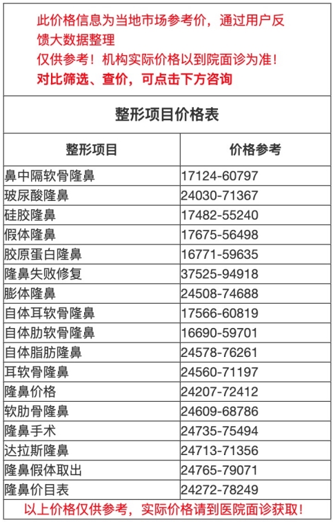 二、撫州市人民醫(yī)院整形外科假體隆鼻價目表