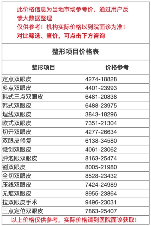 二、三門峽市中心醫(yī)院整形科雙眼皮價(jià)目表