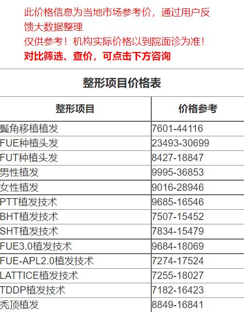 四、荊州第一人民醫(yī)院整形美容科植發(fā)價(jià)格表
