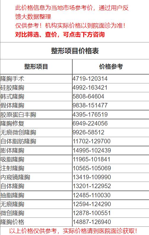 四、福州第一醫(yī)院整形科隆胸價格表