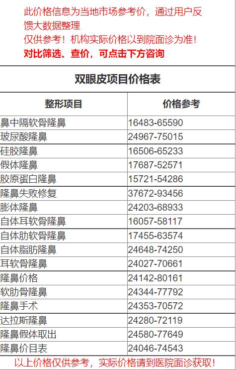 四、中山人民醫(yī)院整形科隆鼻價格表