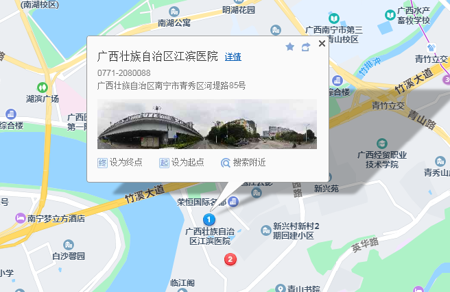 醫(yī)院地址:廣西壯族自治區(qū)南寧市青秀區(qū)河堤路85號(hào)