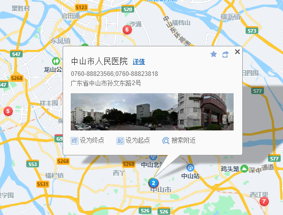 醫(yī)院地址:廣東省中山市孫文東路2號(hào)