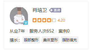 醫(yī)生簡介:肖培衛(wèi)醫(yī)生從事醫(yī)療美容行業(yè)近10年,多次跟隨韓國院長去韓國做技術(shù)交流。在日常的工作中,注重溝通,對顧客細(xì)致關(guān)懷而擁有不錯的口碑,而且他的手術(shù)風(fēng)格以手法微創(chuàng)、精細(xì)、自然、藝術(shù)美感強(qiáng)見長有獨特的立體感,善于把握醫(yī)美人士的心理特征。