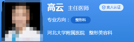 醫(yī)生介紹:高云是主任醫(yī)師,在整形行業(yè)工作多年,經(jīng)驗豐富,技術(shù)也很精湛。還是中國海峽兩岸醫(yī)藥交流協(xié)會整形美容外科分會首屆委員中國非公立醫(yī)療機構(gòu)整形美容專業(yè)委員會瘢痕分會常委、中國非公立醫(yī)療機構(gòu)整形美容專業(yè)委員會眼整形與美容分會委員、中國整形美容協(xié)會河北省分會委員、河北省社區(qū)康復醫(yī)學會整形美容專委會首屆副主任委員、河北省醫(yī)師協(xié)會耳鼻咽喉頭頸外科分會委員。