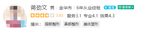 醫(yī)生介紹:蔣勁文是主治醫(yī)師,在整形行業(yè)工作了6年,積累了很多的經(jīng)驗。擅長眼部整形、鼻部整形、美體塑形等。還會根據(jù)不同的求美者,制定個性化的變美方案,不會讓大家沒得千篇一律,擁有屬于自己的美麗。