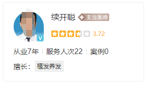 醫(yī)生簡介:續(xù)開聰醫(yī)生從事毛發(fā)移植專業(yè)有10多年的時間,擁有豐富的植發(fā)經驗,他對于各種毛發(fā)移植有著深入的研究和探討,熟練的掌握了各方面的植發(fā)手術技術,在多年工作當中始終秉承著嚴謹、精細、自然的植發(fā)理念,擅長遵循患者的自身情況打造個性化的手術方案,多年來已幫助眾多患有解決了各種脫發(fā)的煩惱,贏得了廣大愛美人士的青睞和認可。