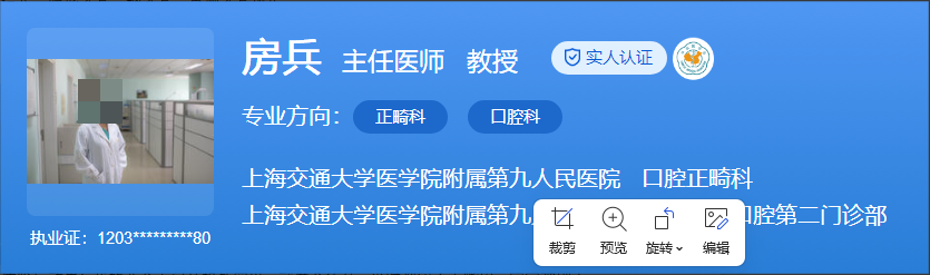 醫(yī)生介紹:房兵醫(yī)生畢業(yè)于上海交通大學(xué)口腔醫(yī)學(xué)院,并獲得博士學(xué)位。他在口腔正畸科領(lǐng)域有豐富的臨床經(jīng)驗(yàn),現(xiàn)任上海九院的口腔正畸科主任,其研究方向包括牙及牙槽骨改建的生物力學(xué)及學(xué)分子生物學(xué)等。