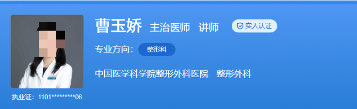 醫(yī)生介紹:曹玉嬌醫(yī)生就讀于北京協(xié)和醫(yī)學(xué)院,整形外科學(xué)專業(yè),碩博連讀,獲整形外科博士學(xué)位,研究方向是組織移植和器官再造。她專業(yè)擅長女性私密手術(shù),涵蓋了處女膜修復(fù)術(shù)、大陰唇豐隆術(shù)等,曾在核心期刊發(fā)表十多篇文獻,在整形領(lǐng)域有很高的知名度和影響力。